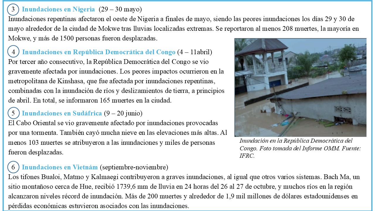 A continuación se describe brevemente los impactos asociados a los eventos extremos destacados en la Figura 1, acorde con su etiqueta numérica.