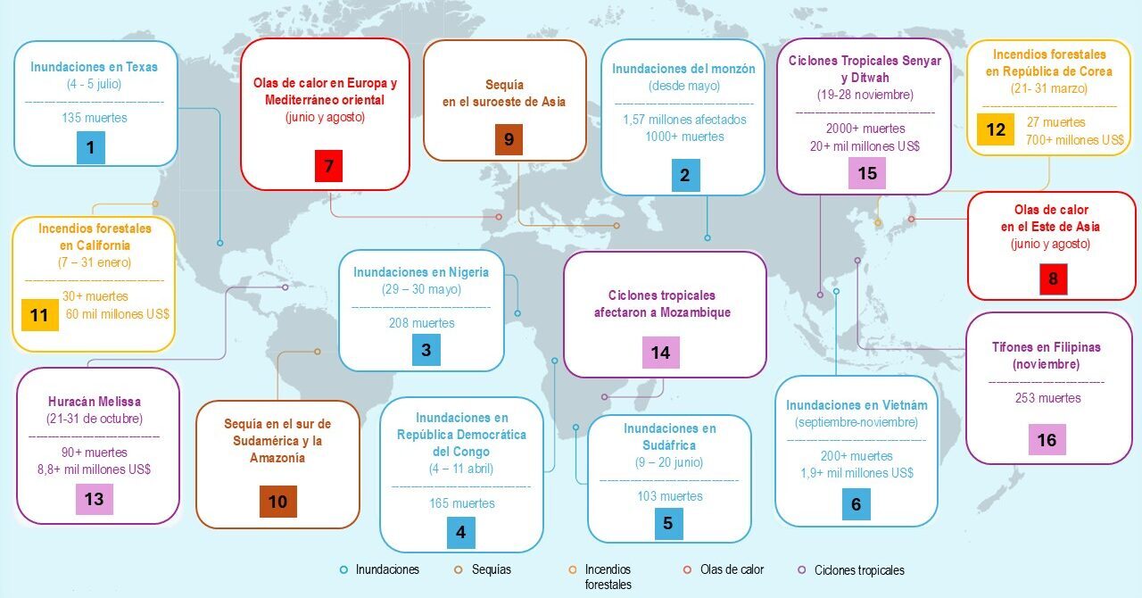 Eventos extremos en 2025 (informe OMM)